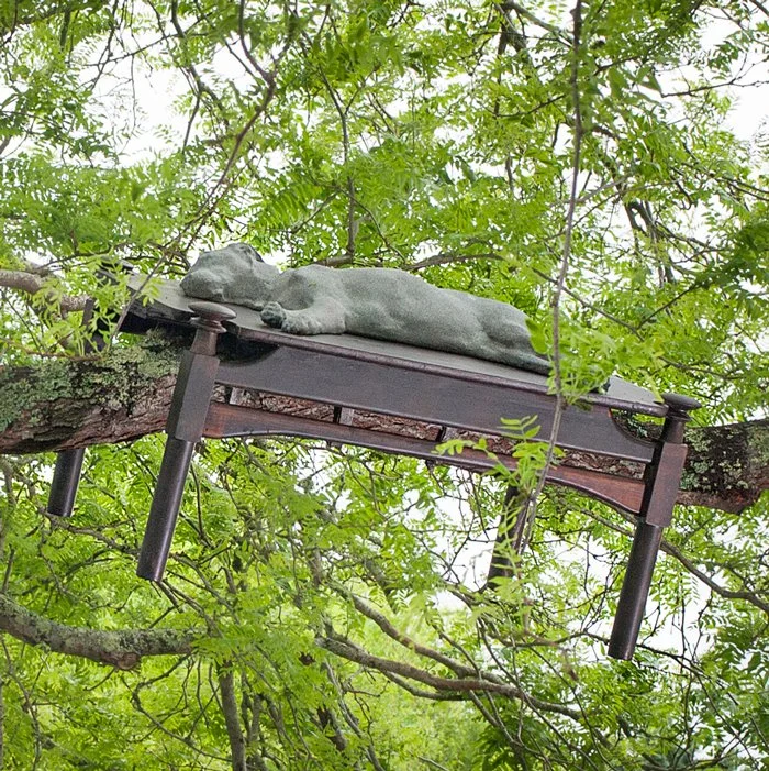This exhibition celebrated ten years of Sculpture in the Gardens with works that took the viewer on a journey of discovery. Amongst the bronzes was Lucy Bucknall’s howling wolf, Phil Neary’s charm bracelet of trinkets and Samantha Lissette’s groups of promenading critters out for a garden walk. Andrea Gardner and Brit Bunkley’s Peaceable Kingdom where fauna adorn the scene created a mood of harmonious co-existence.